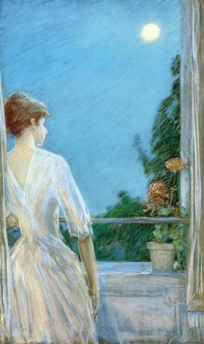 (The image is On the Balcony by Childe Hassam.)